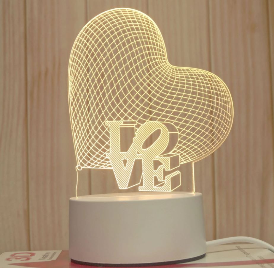 Romantic Love 3D Acrylic Led Lamp for Home Children’s Night Light Table Lamp Birthday Party Decor Valentine’s Day Bedside Lamp Love